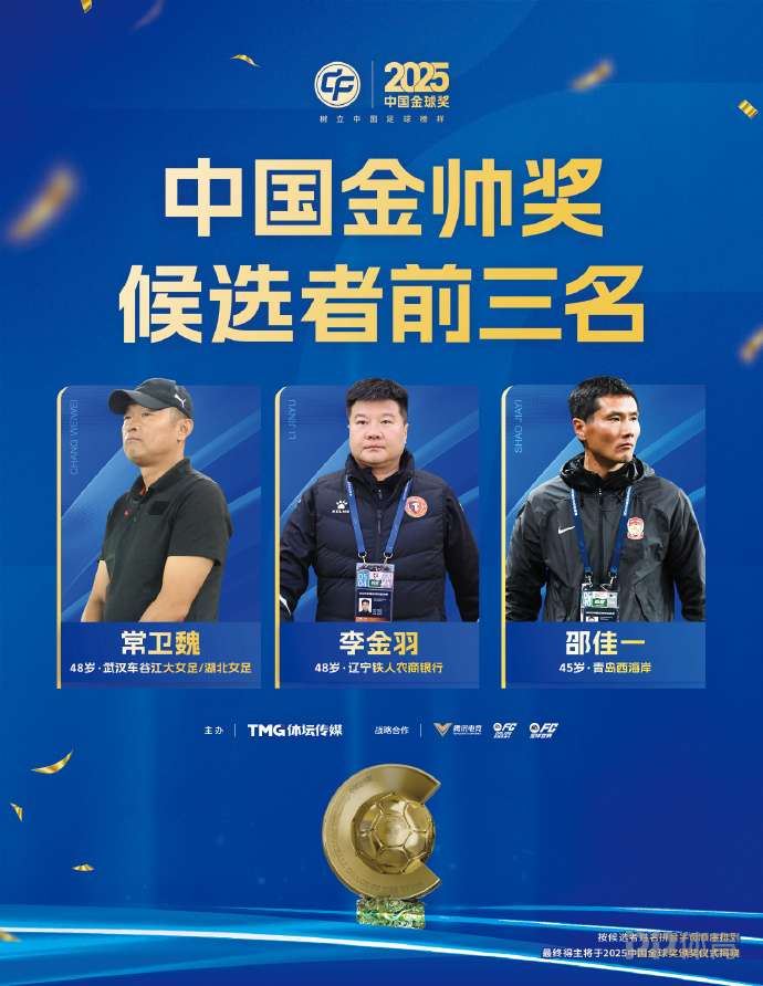 常卫魏、李金羽和邵佳一跻身中国金帅奖前三名