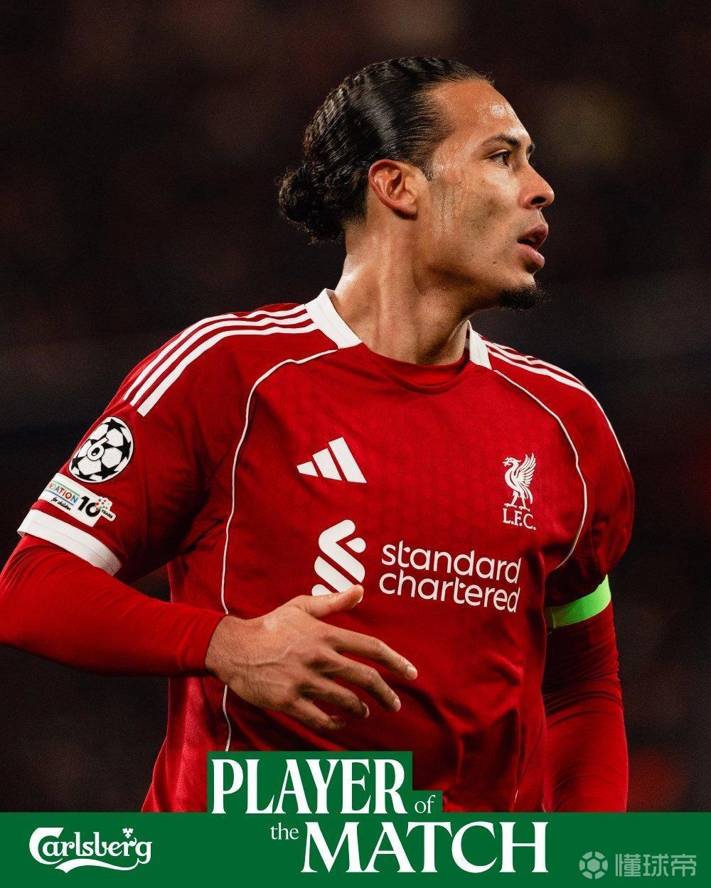 英超新闻利物浦官方宣布,范戴克当选球队与卡拉巴赫一役队内最佳球员。
