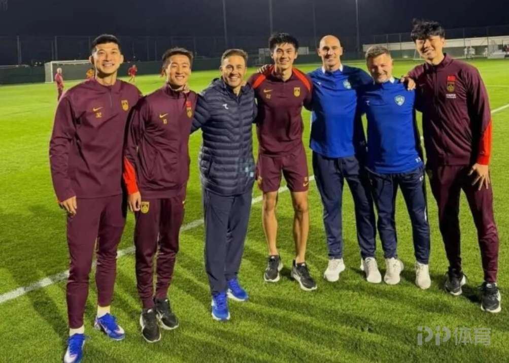 国足对阵乌兹别克斯坦赛后 前广州球员与卡纳瓦罗合影