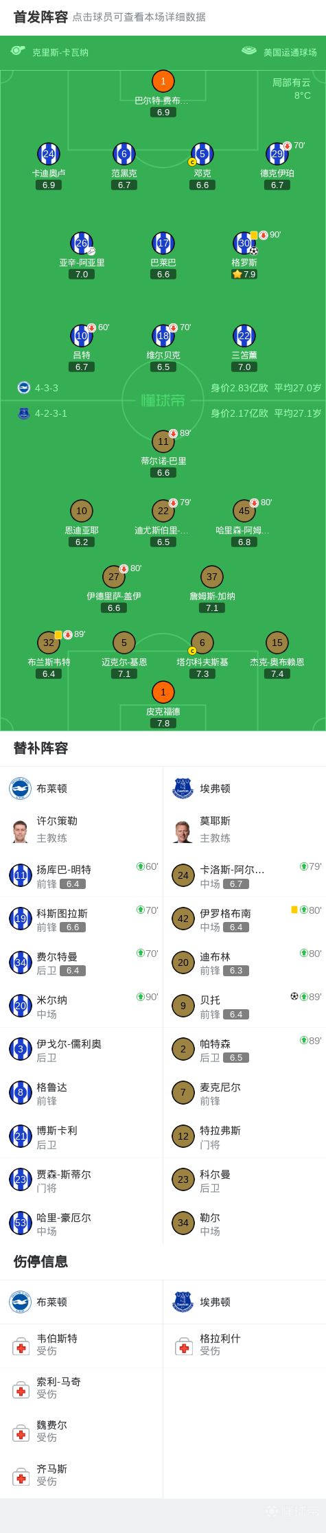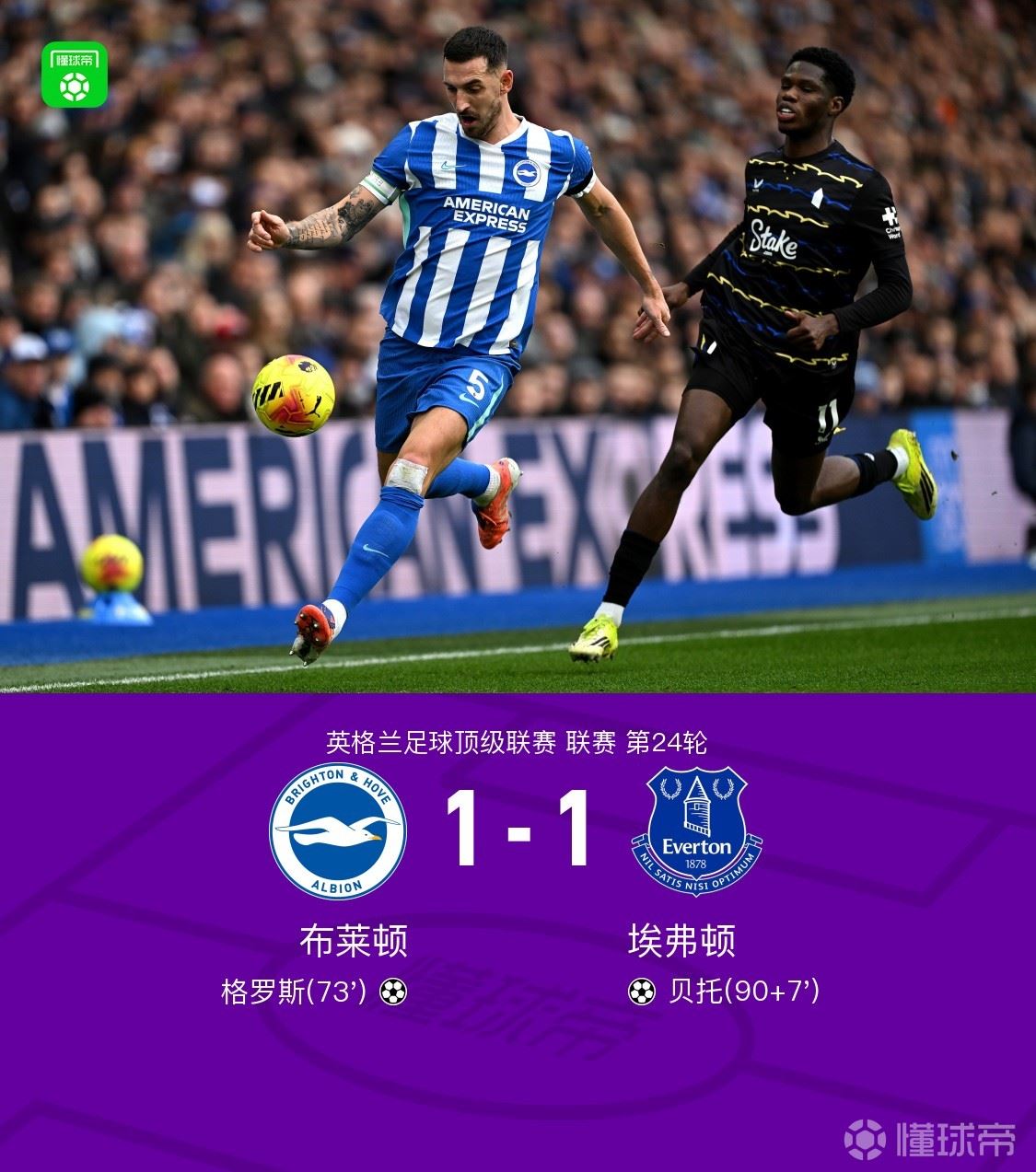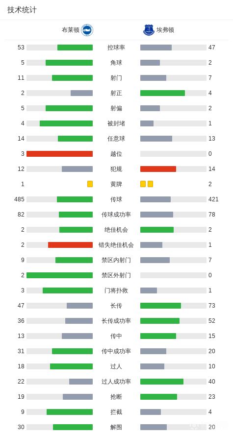 布莱顿1-1埃弗顿,贝托读秒绝平,格罗斯破门