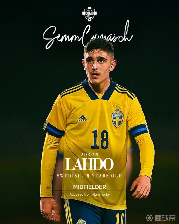 科莫俱乐部欣喜宣布,正式签下18岁瑞典中场阿德里安-拉赫多,球员自哈马比加盟,双方签约至2031年。