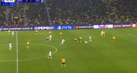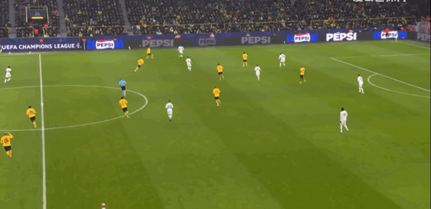 多特蒙德借助主场优势,通过高位压迫和边路进攻(侧重直塞球)压制国米持续制造威胁,(本场长传球就尝试了56次,而国米只有30次尝试),对国米的战术强侧迪马尔科——左侧区域身后频繁配合。