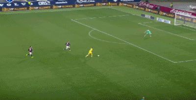 第17分钟,差之毫厘,福法纳前点头球攻门擦柱而出