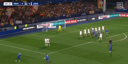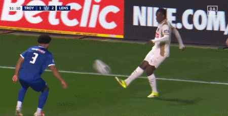 第45+4分钟,阿德林右路内切低射破门扳平比分,特鲁瓦1-1朗斯