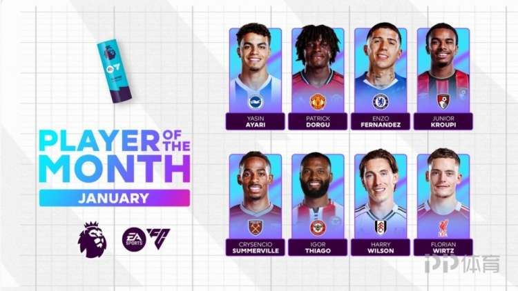 英超官方1月最佳球员候选:维尔茨、恩佐、多尔古在列