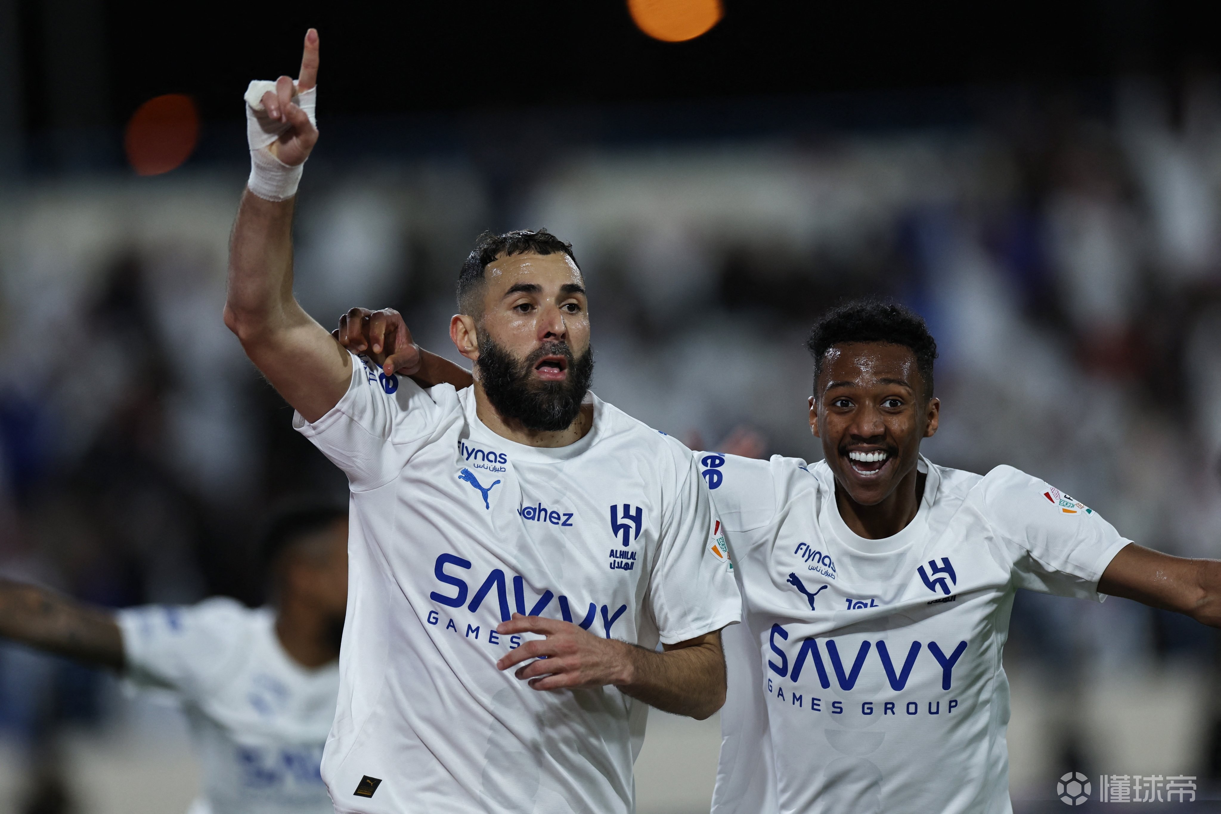 沙特联赛第21轮,利雅得新月客场对阵阿科多,上演利雅得新月首秀的本泽马斩获首球。
