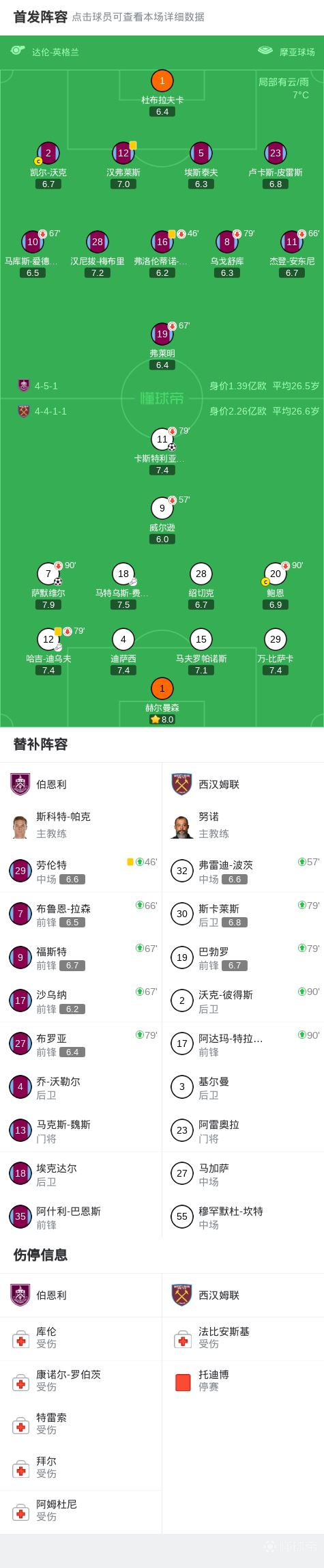 第25分钟,迪乌夫传中,卡斯特利亚诺斯头槌破门,伯恩利0-2西汉姆联