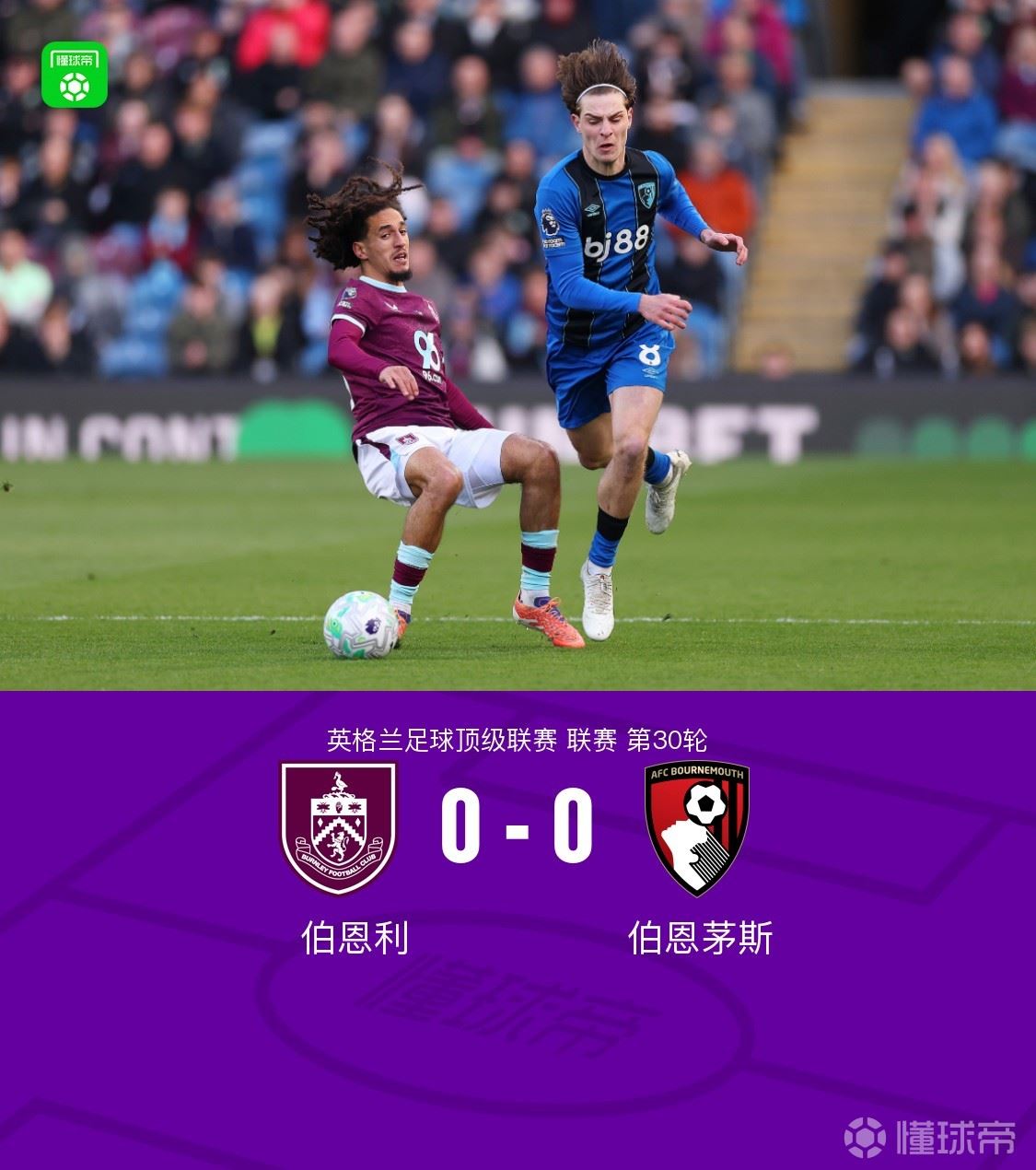 北京时间3月14日英格兰足球顶级联赛第30轮,伯恩利主场对阵伯恩茅斯。双方互有攻守,但未能完成破门,埃万尼尔松空门不进失良机。最终比分伯恩利 0-0 伯恩茅斯。