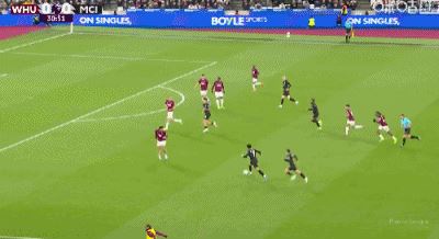 第31分钟,B席禁区左路吊射破门,曼城1-0西汉姆联