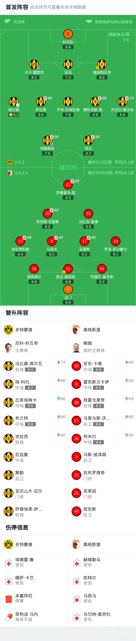 第59分钟,雷贾尼头球破门,多特2-0奥格斯堡