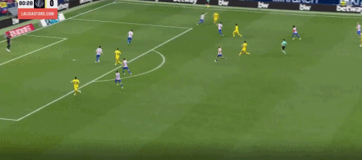 第45+1分钟,简单的不进,巴埃纳分球,莫利纳门前推射打偏